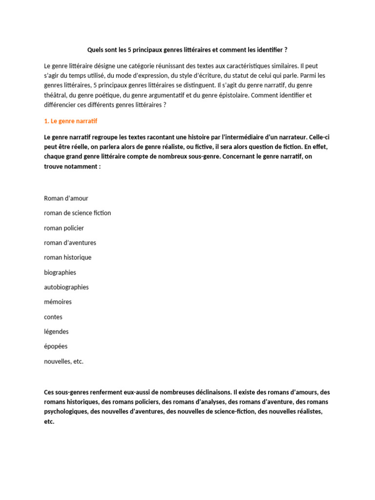 Les genres littéraires (analyse de texte 4/5) - Bien écrire
