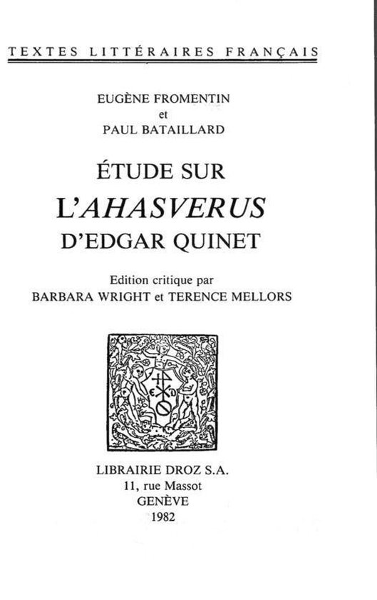 Textes littéraires français - Etude sur l'"Ahasverus" d'Edgar Quinet ...