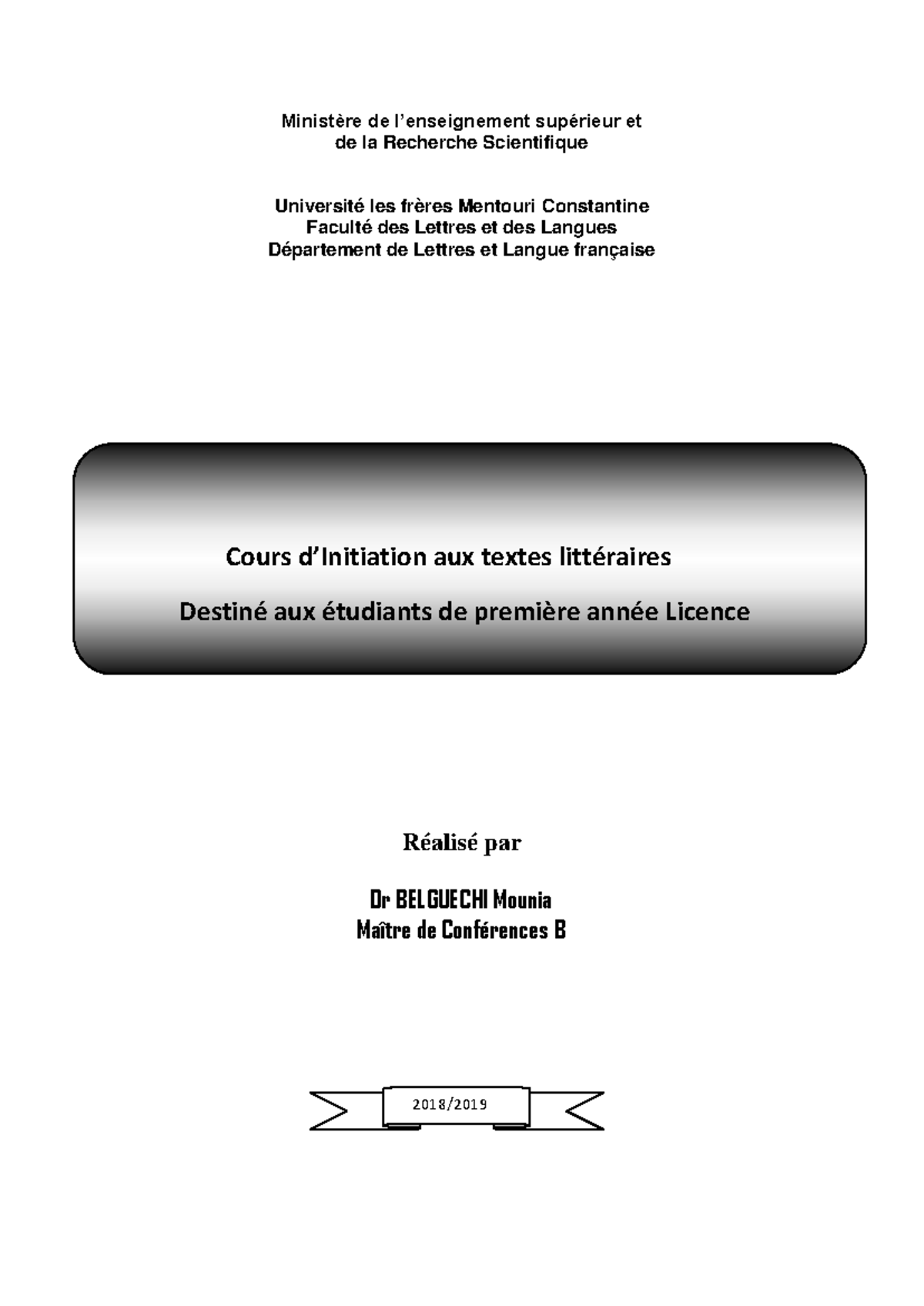Cours d'Initiation aux Textes Littéraires - Module pour 1ère Année ...