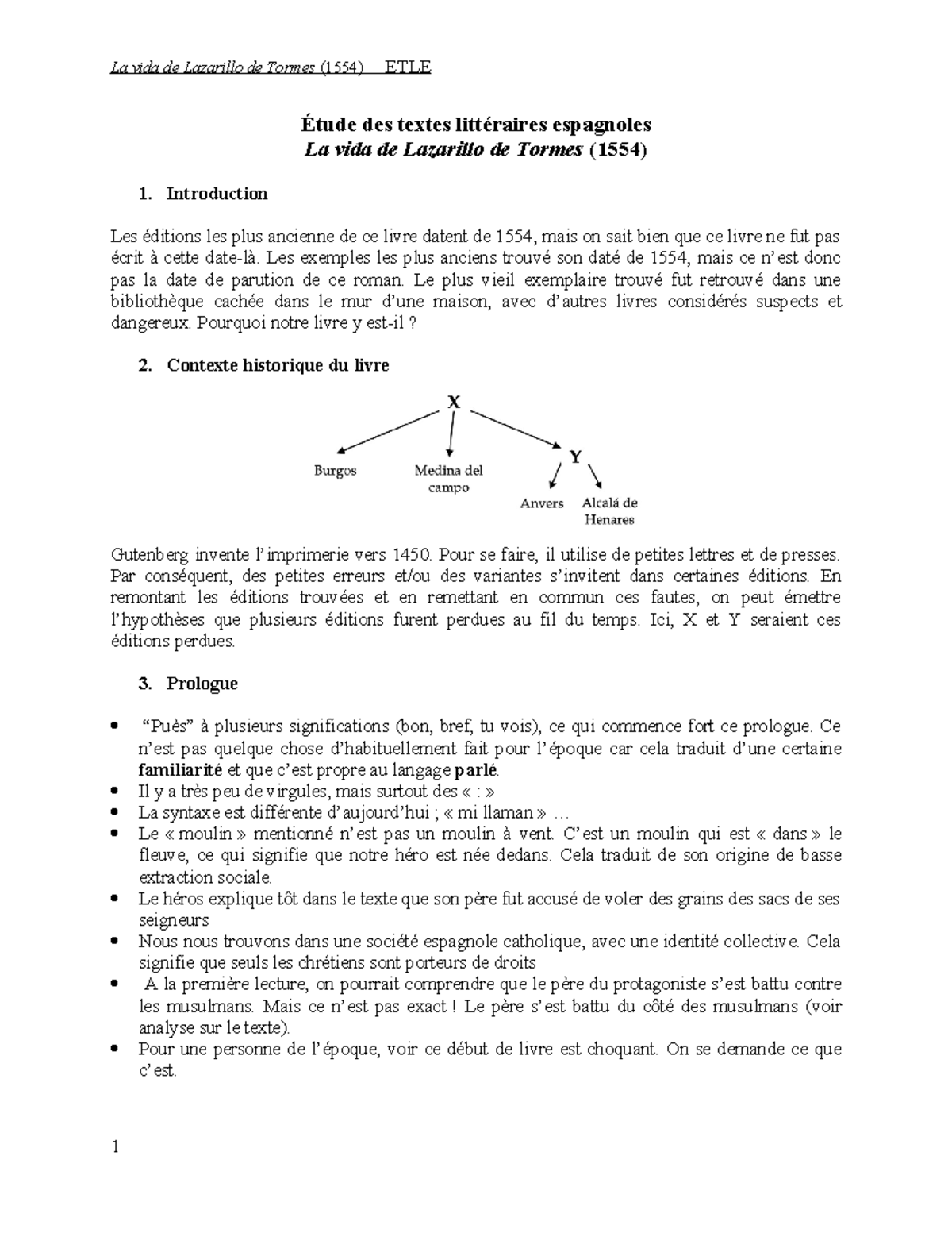 ETLE - La vida de Lazarillo de Tormes (1554) ETLE Étude des textes ...