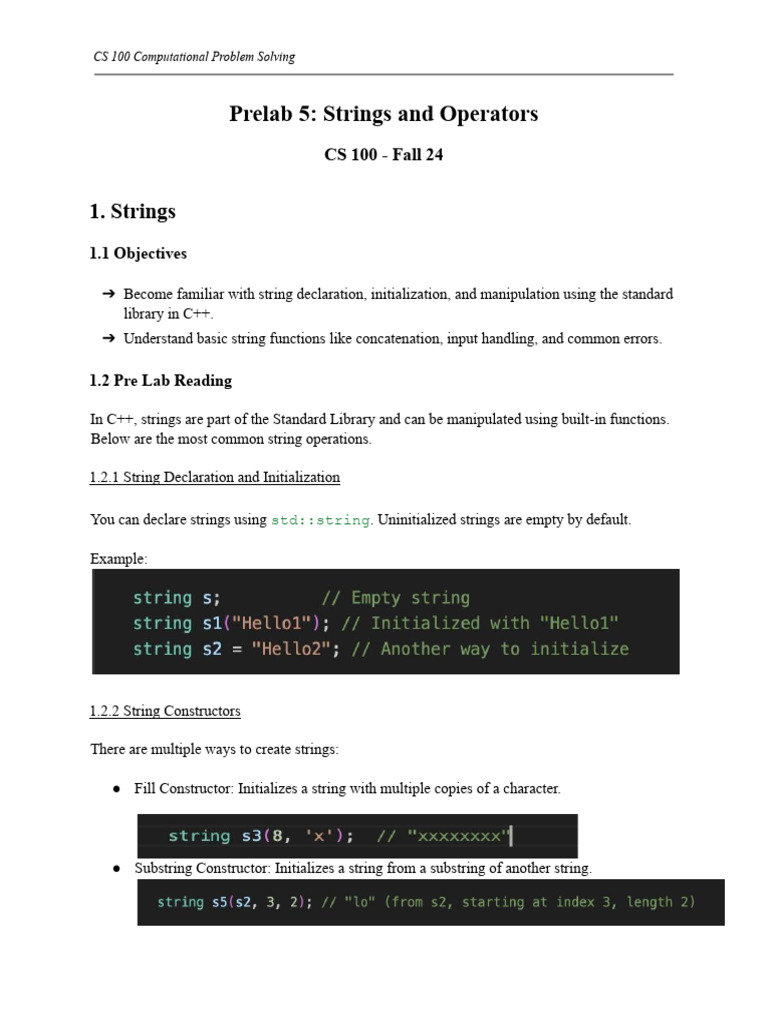 Prelab5 String+Operators | PDF | String (Computer Science) | Computer ...