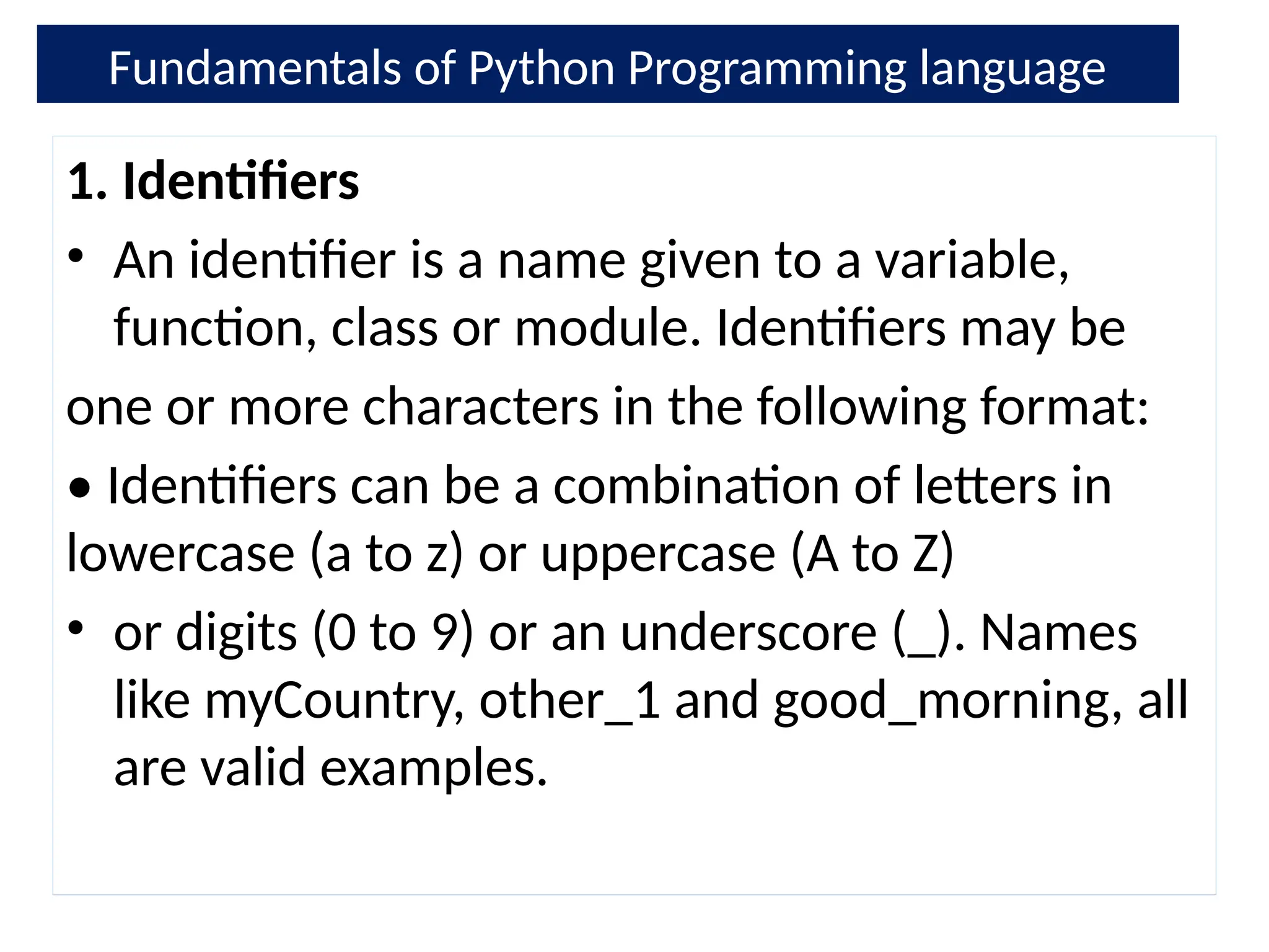 Identifier Examples | Valid Identifier | Invalid Identifier | Python ...