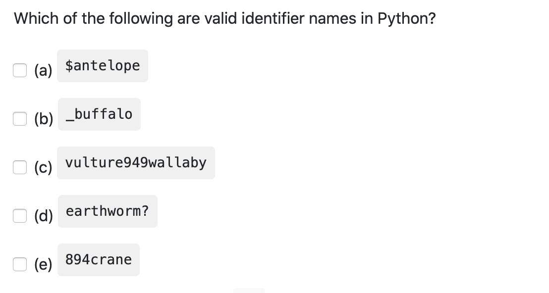 Solved Q2) Which of these is a valid identifier?A) | Chegg.com