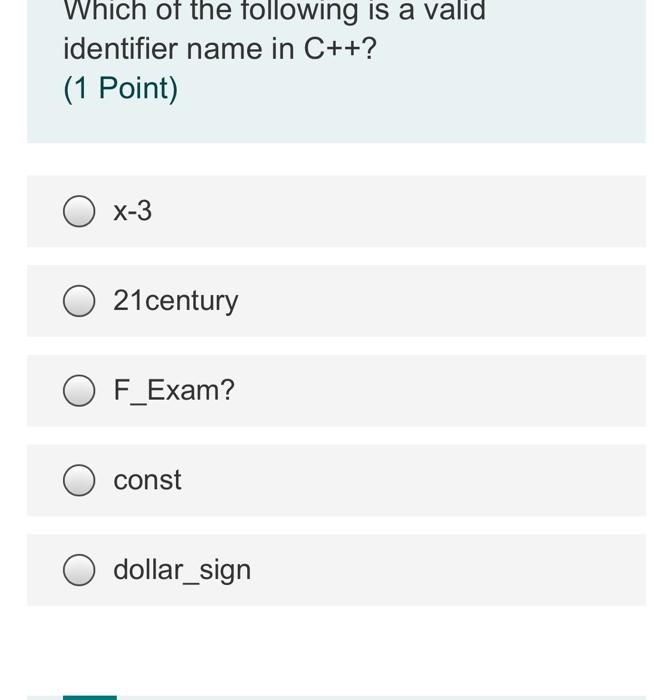 Solved Which of the following is a valid identifier name in | Chegg.com