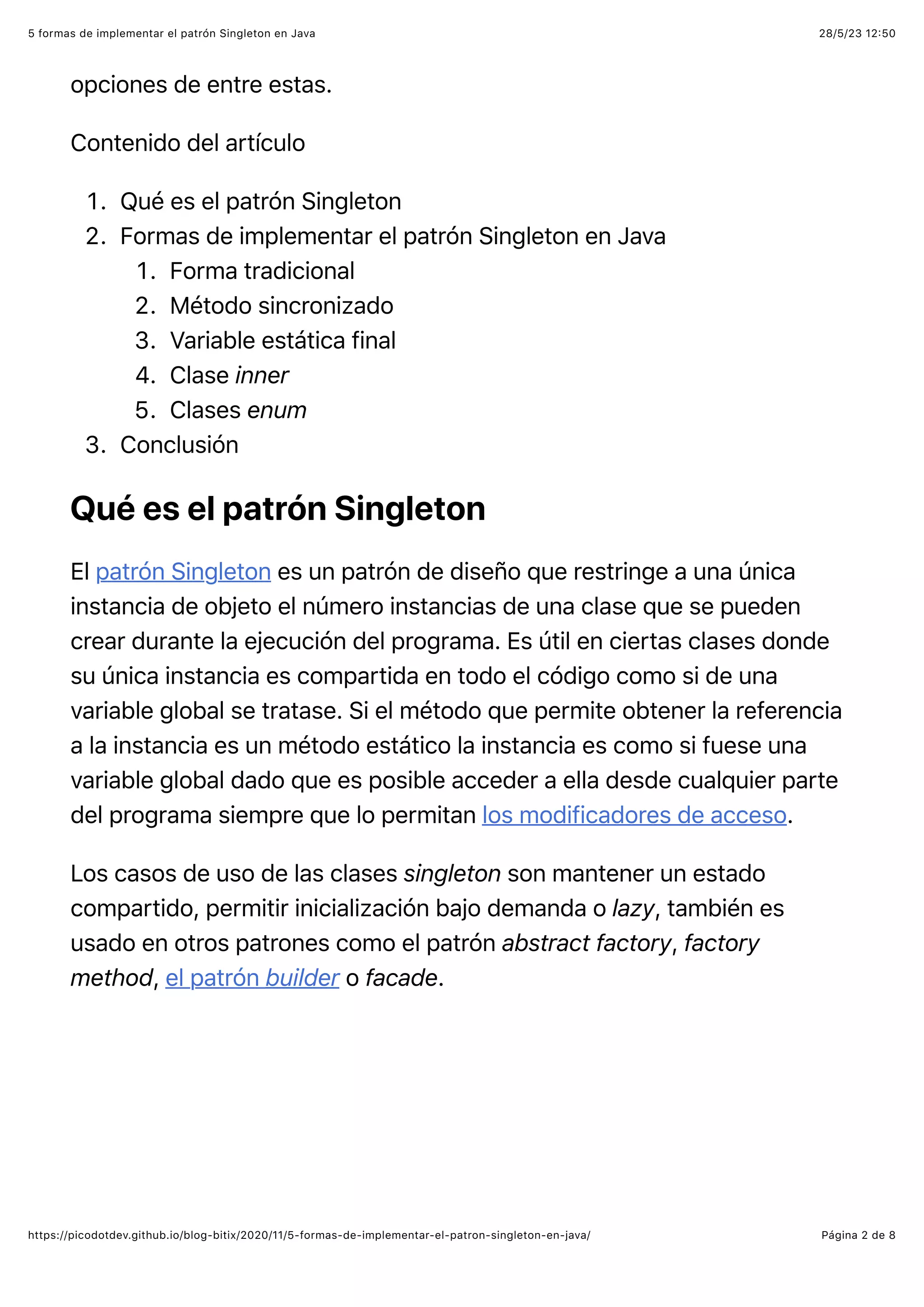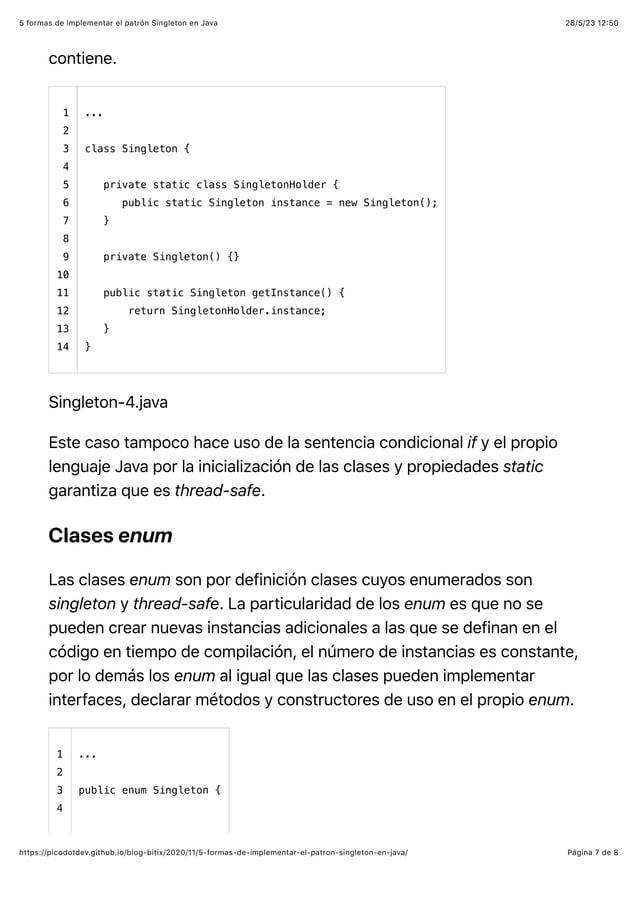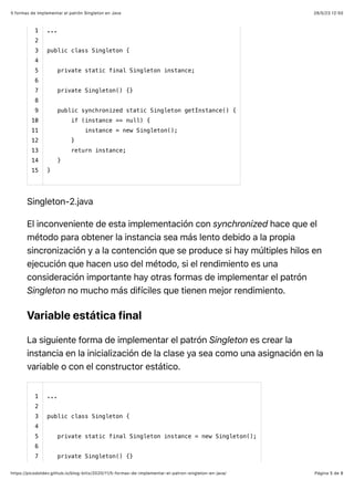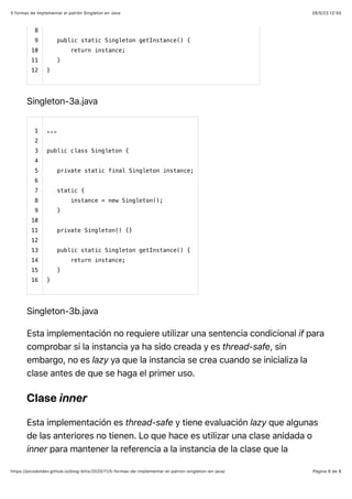 Guía del Patrón Singleton en Java | PDF | Objeto (informática) | Método ...