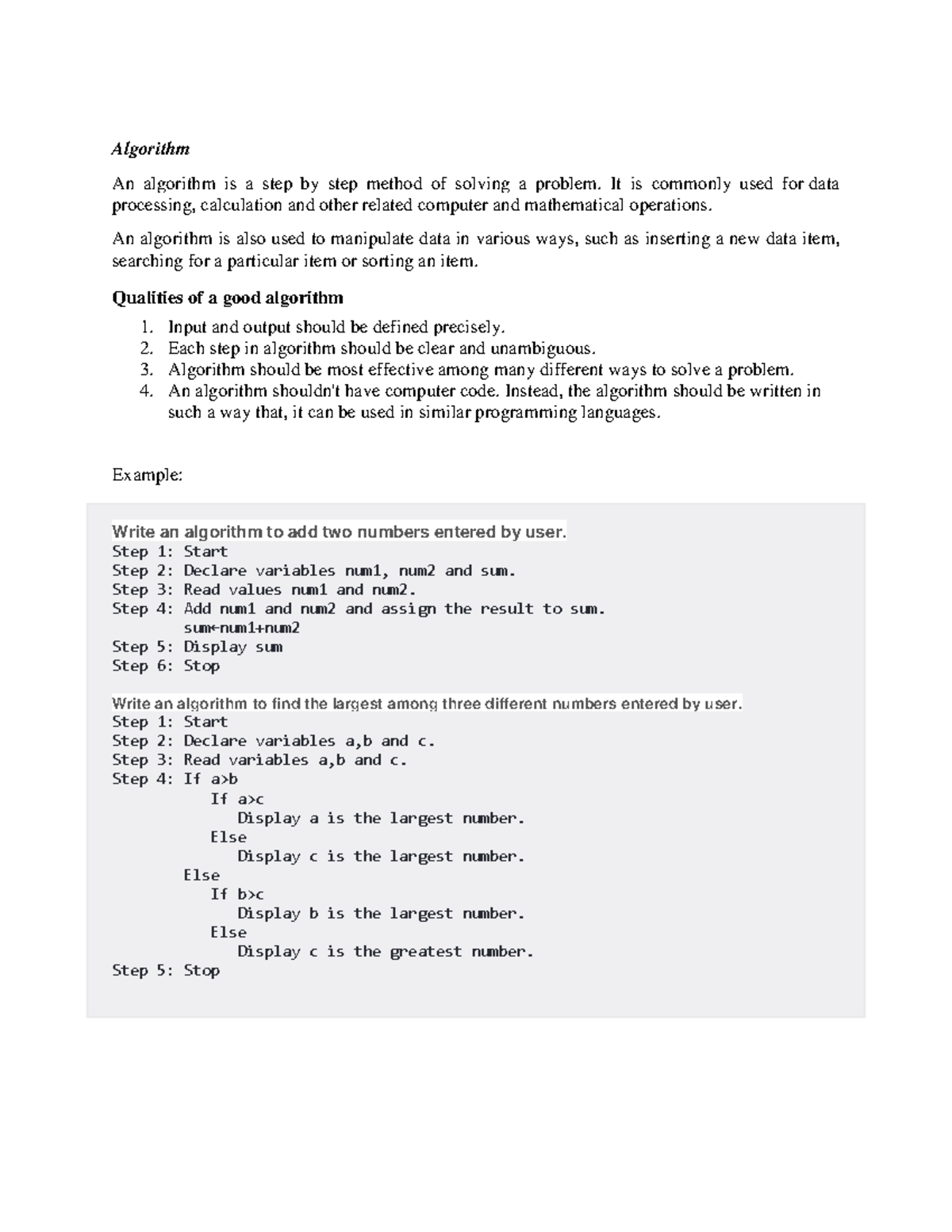 CHAP 1 - note - Computer Programming Basics Algorithm for problem ...