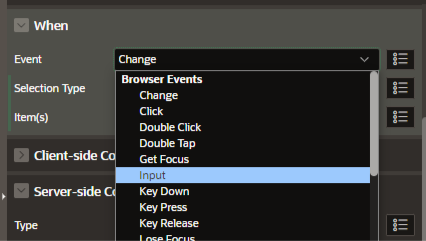 Configuring dynamic action Browser event : Input in Oracle Apex ...