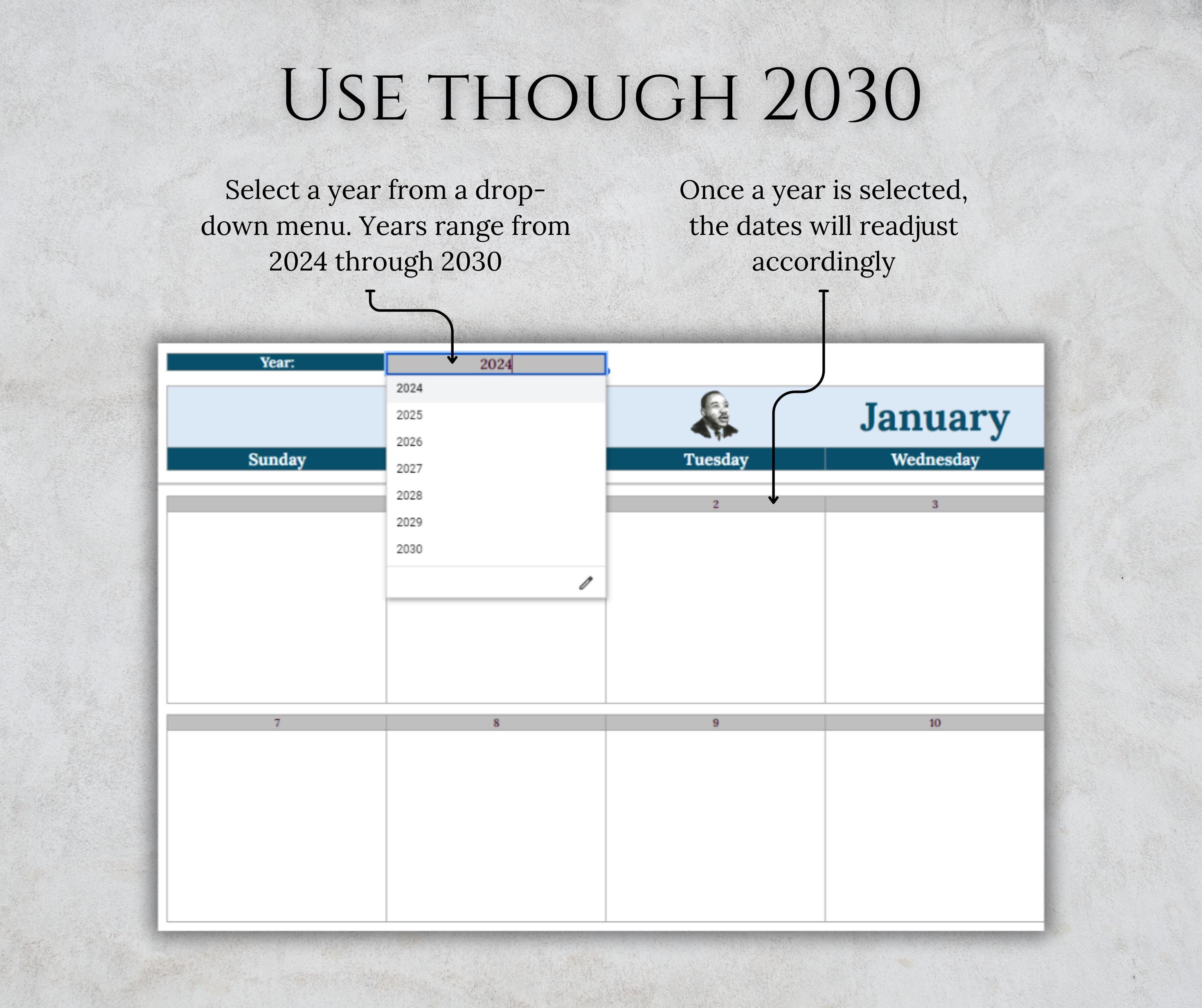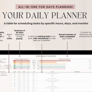 Based on this image's title: “The Ultimate Digital Calendar and Interactive Daily Planner Spreadsheet ...”