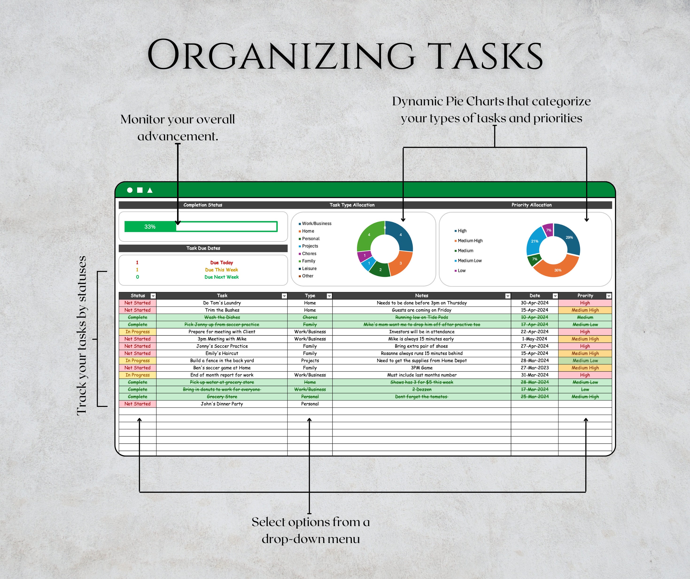 Excel Task Tracker Template| Excel Planner Spreadsheet Monthly to Do ...