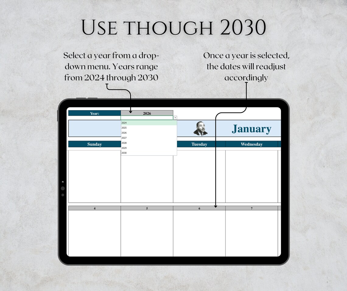 Monthly Calendar (5 years) - Digital Planner Template PDF for iPad or ...