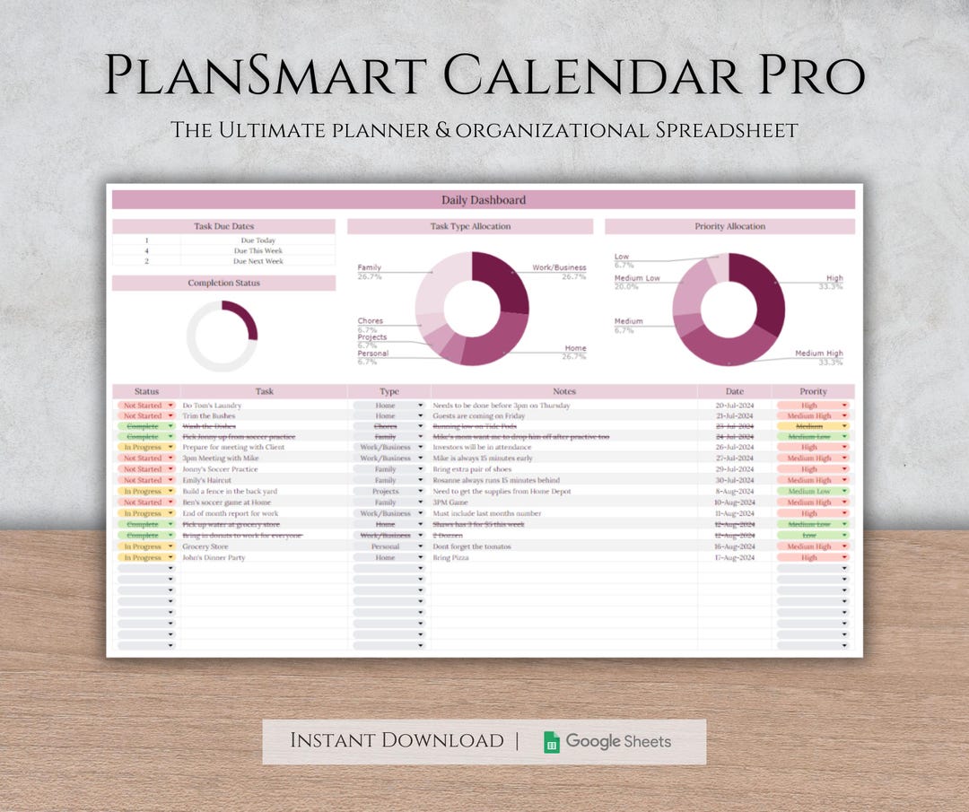 Digital Google Sheet Calendar Template, Daily Schedule Task Tracker ...