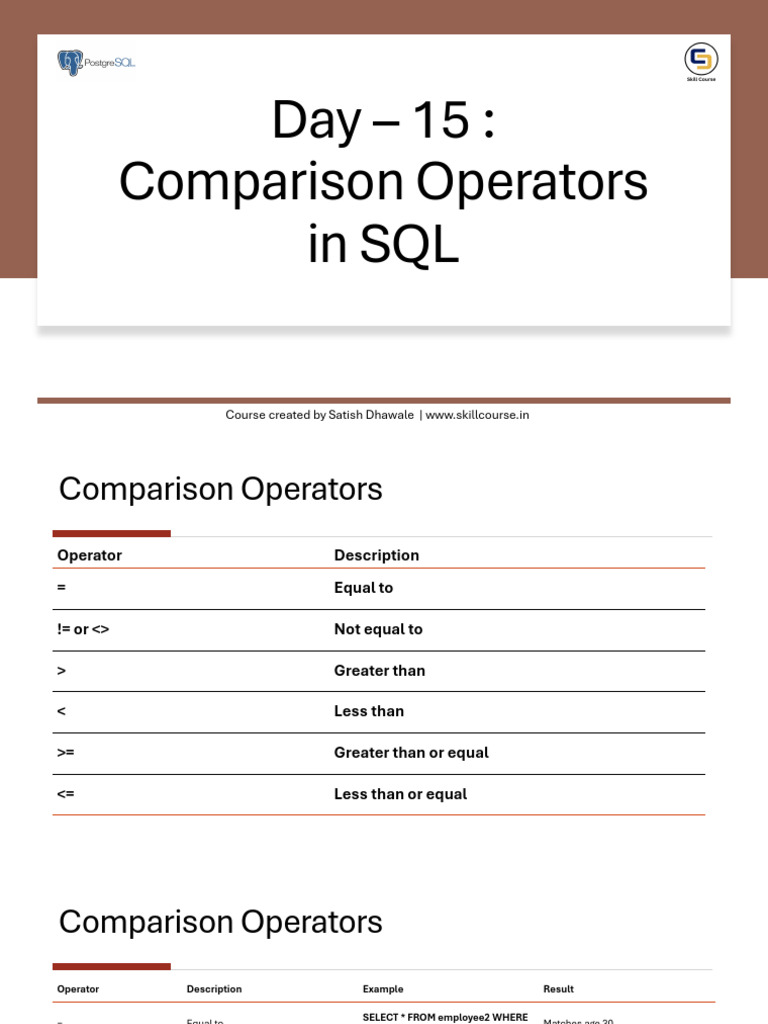 15 Use of Comparison Operators in SQL | PDF