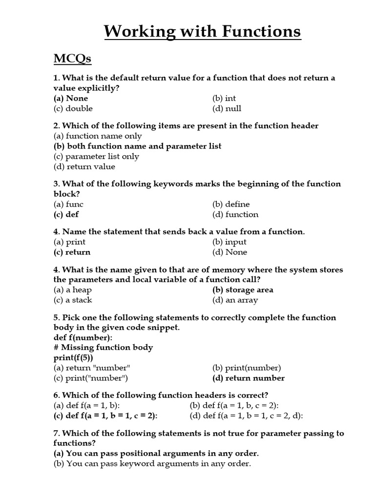 Python Functions MCQs and Explanations | PDF | Parameter (Computer ...