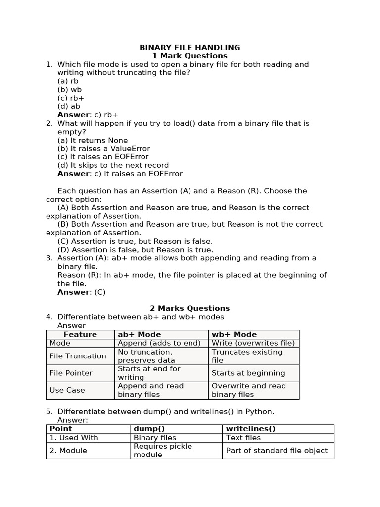 Class 12 Binary File Handling Questions | PDF | Computer File | File Format