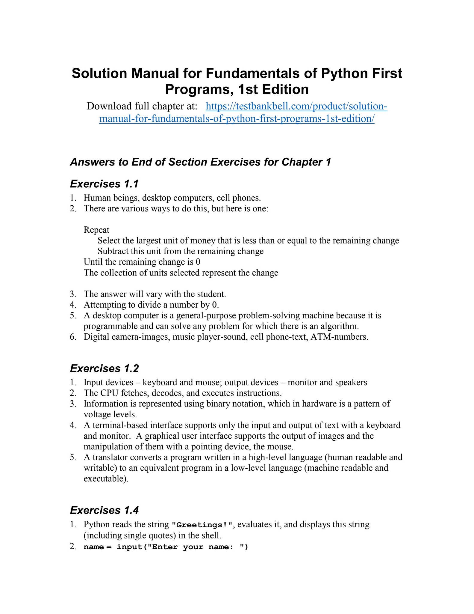 Complete Solutions Manual & Answer Guide — Fundamentals of Python ...