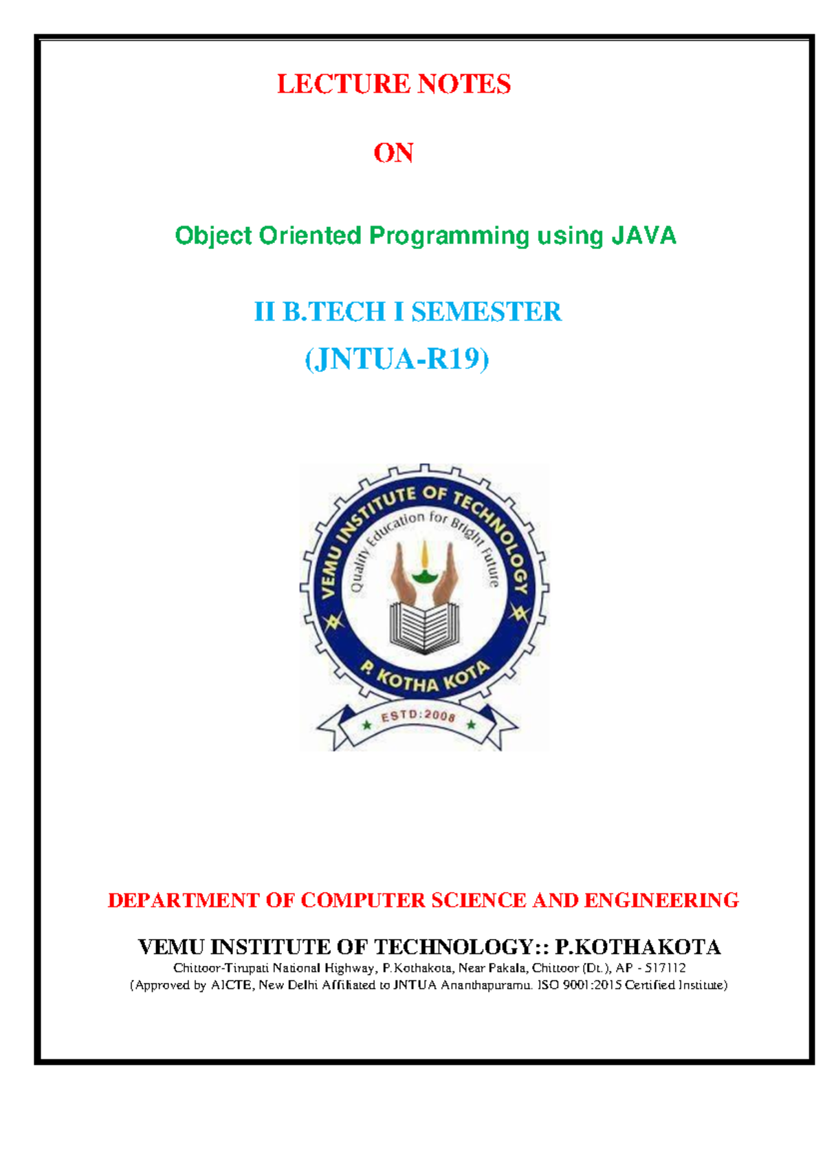 Download Object Oriented Programming Lecture Notes (Java) by Vikrant ...