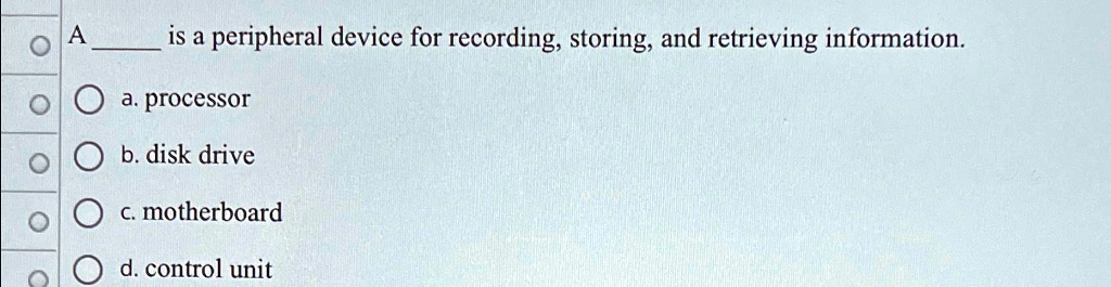 SOLVED: A is a peripheral device for recording, storing, and retrieving ...