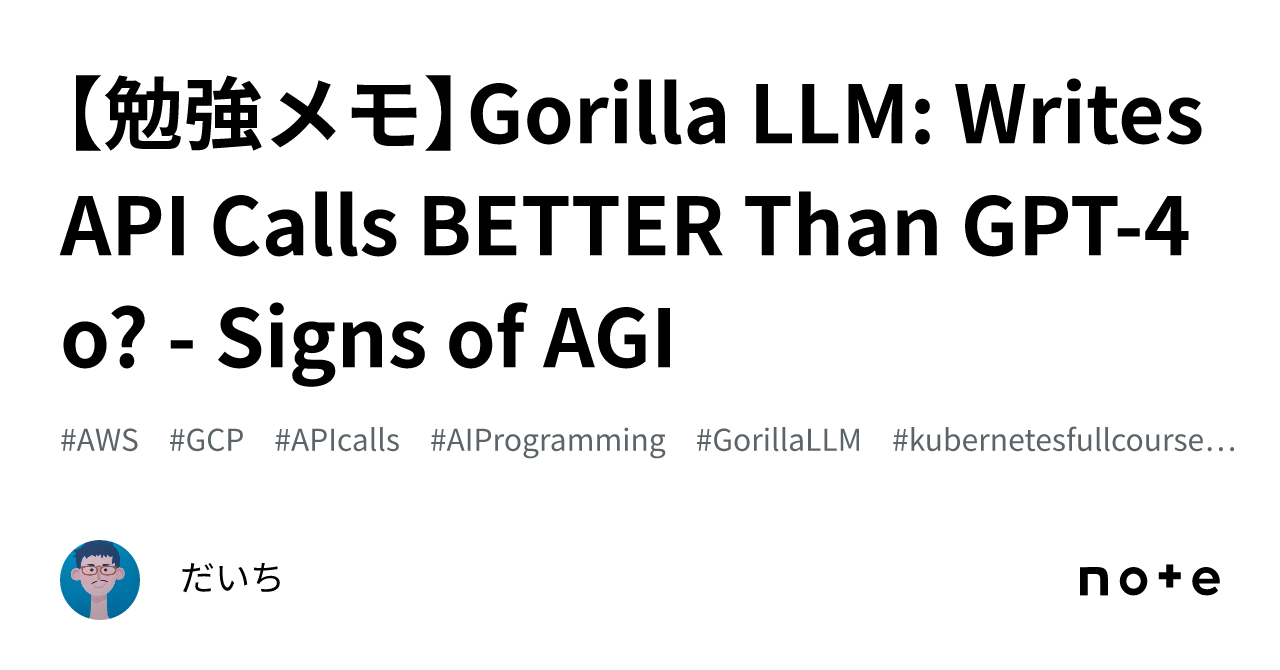 【勉強メモ】Gorilla LLM: Writes API Calls BETTER Than GPT-4o? - Signs of AGI|だいち