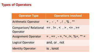 PPT - PYTHON - VARIABLES AND OPERATORS PowerPoint Presentation, free ...