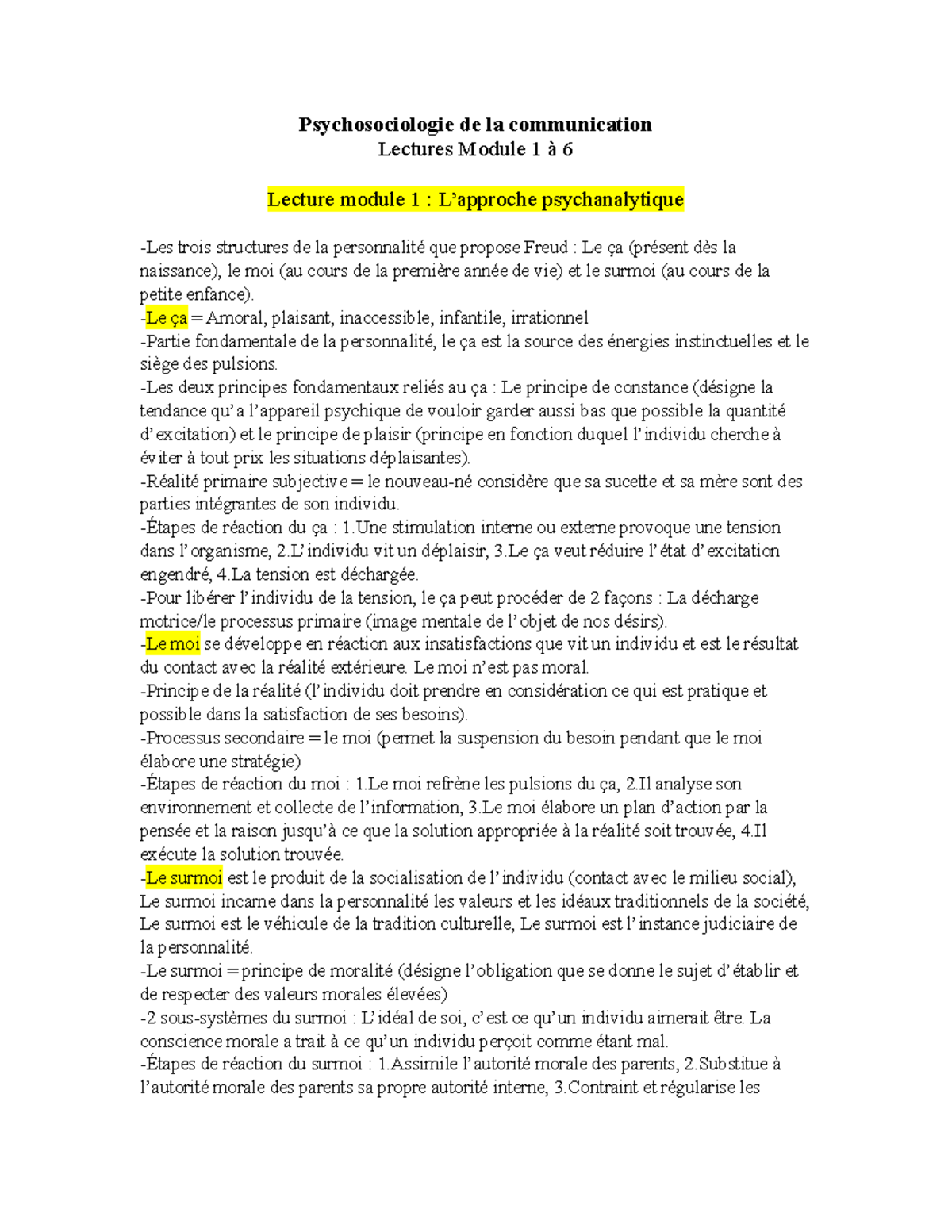 Module 1 à 6 - Cours de Manin Niquette - Psychosociologie de la ...