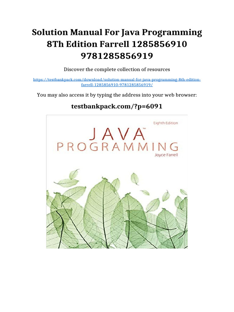 Solution Manual for Java Programming 8th Edition Farrell 1285856910 ...