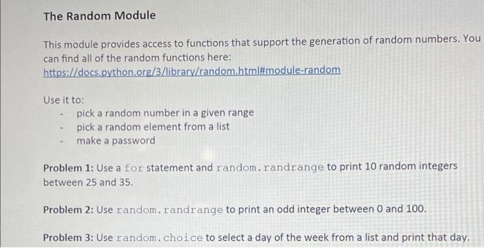 Based on this image's title: “Solved The Python random module has functions that can be | Chegg.com”
