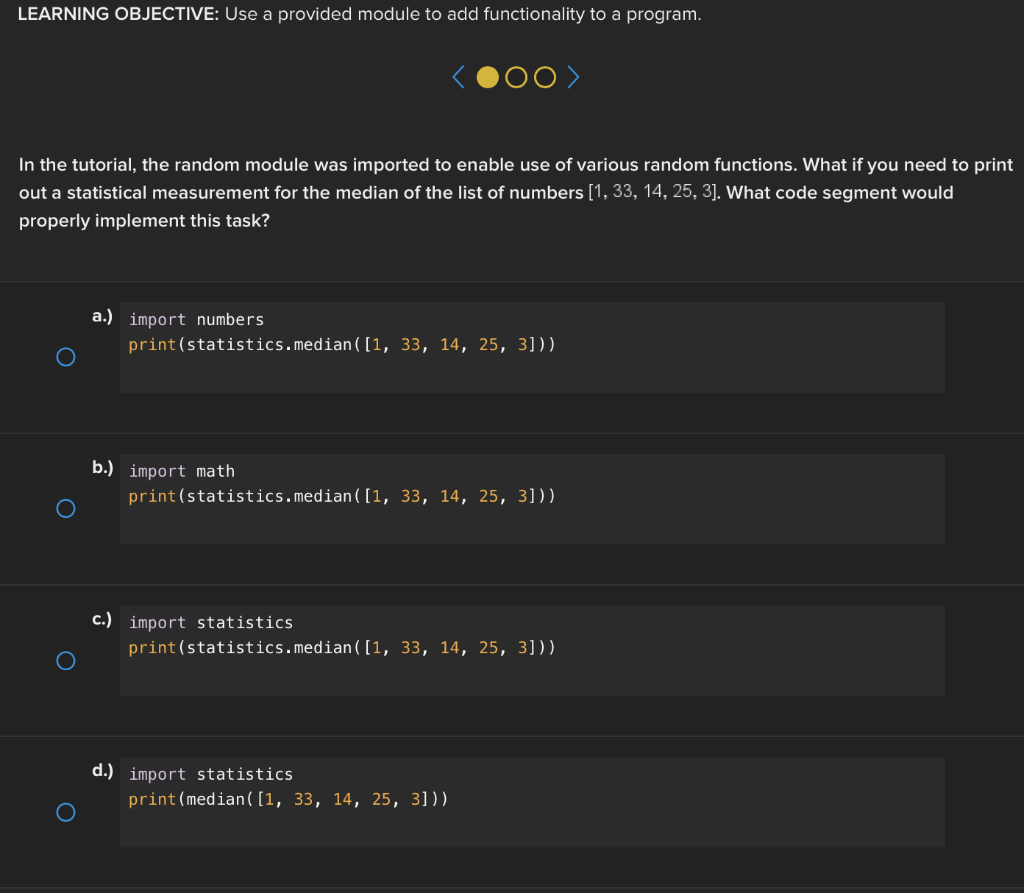 Solved In the tutorial, the random module was imported to | Chegg.com