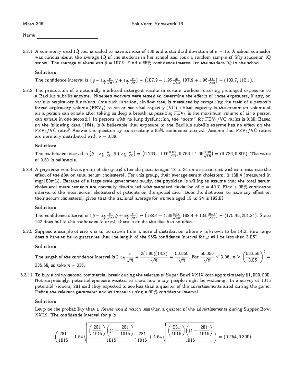 Math 3081 Homework 16 Solutions: Confidence Intervals Analysis - Studocu