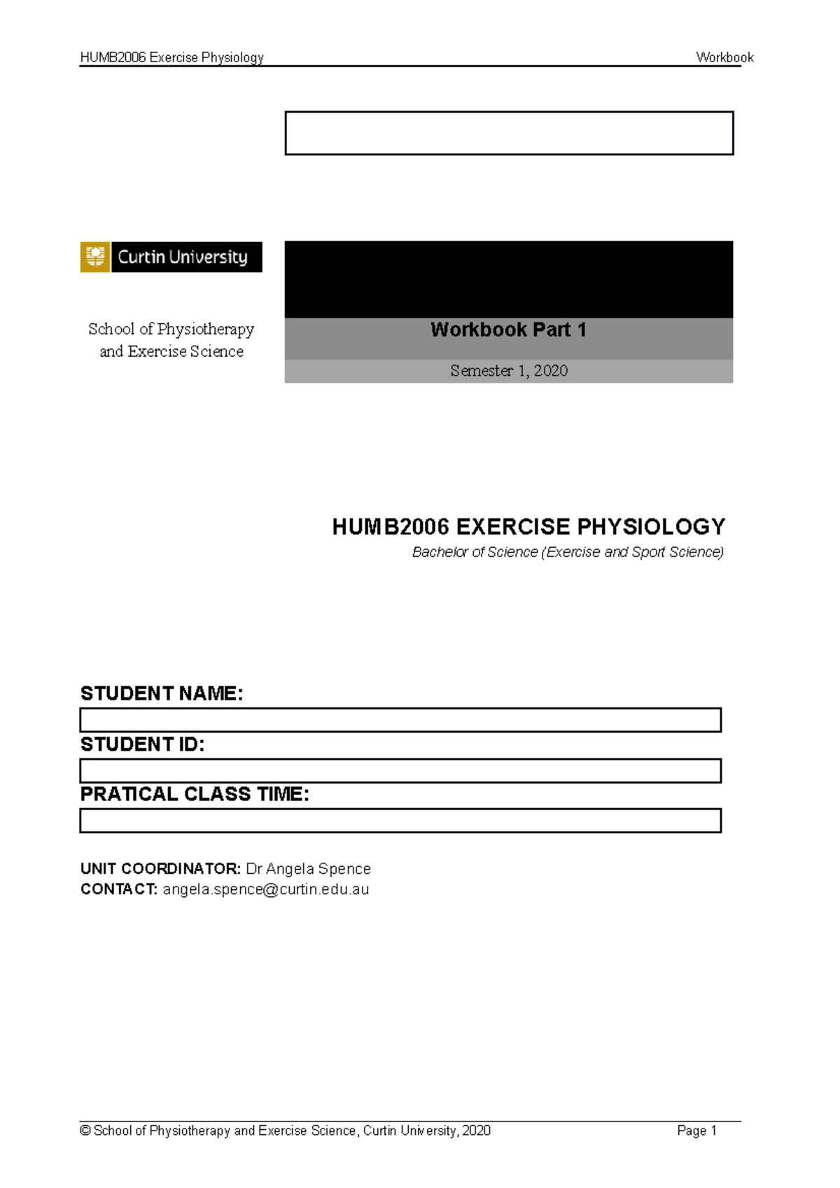 Exercise Physiology Workbook Part 1 - Exercise Physiology School of ...