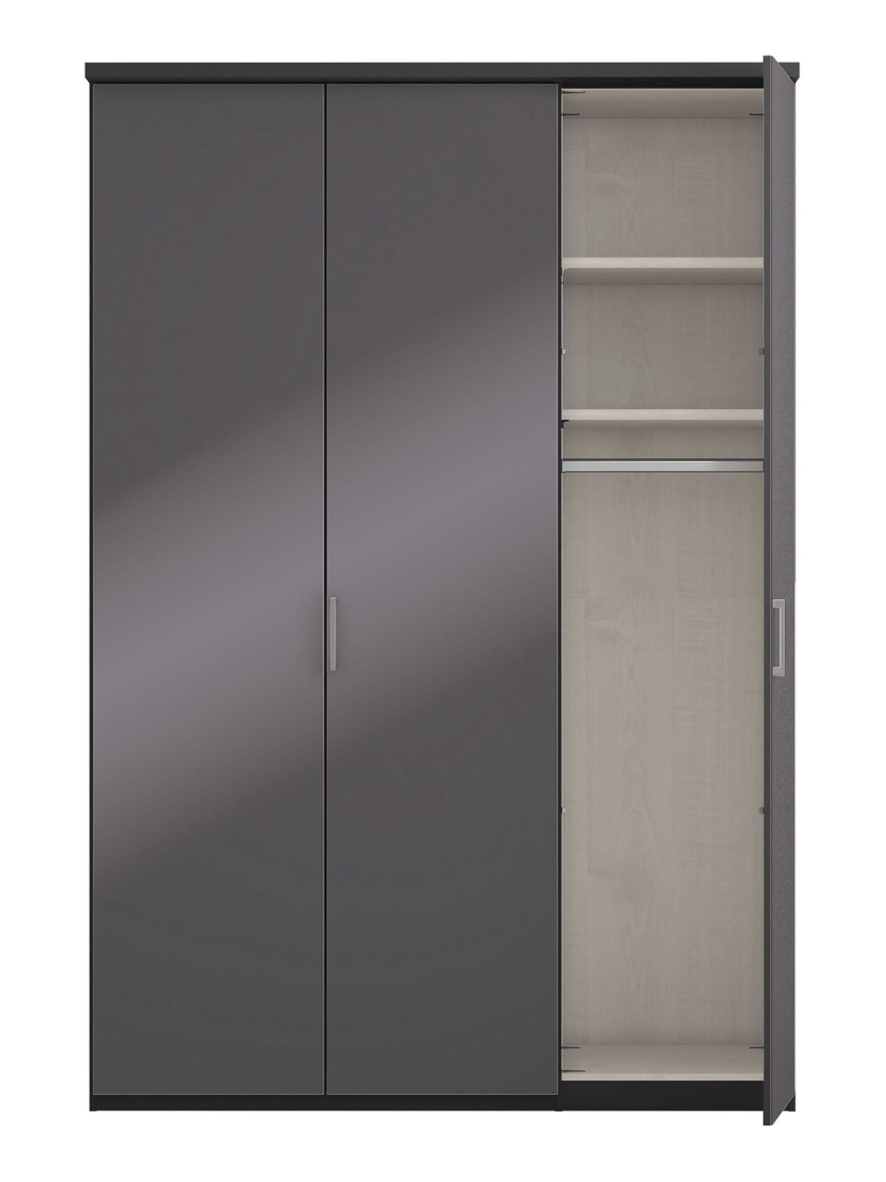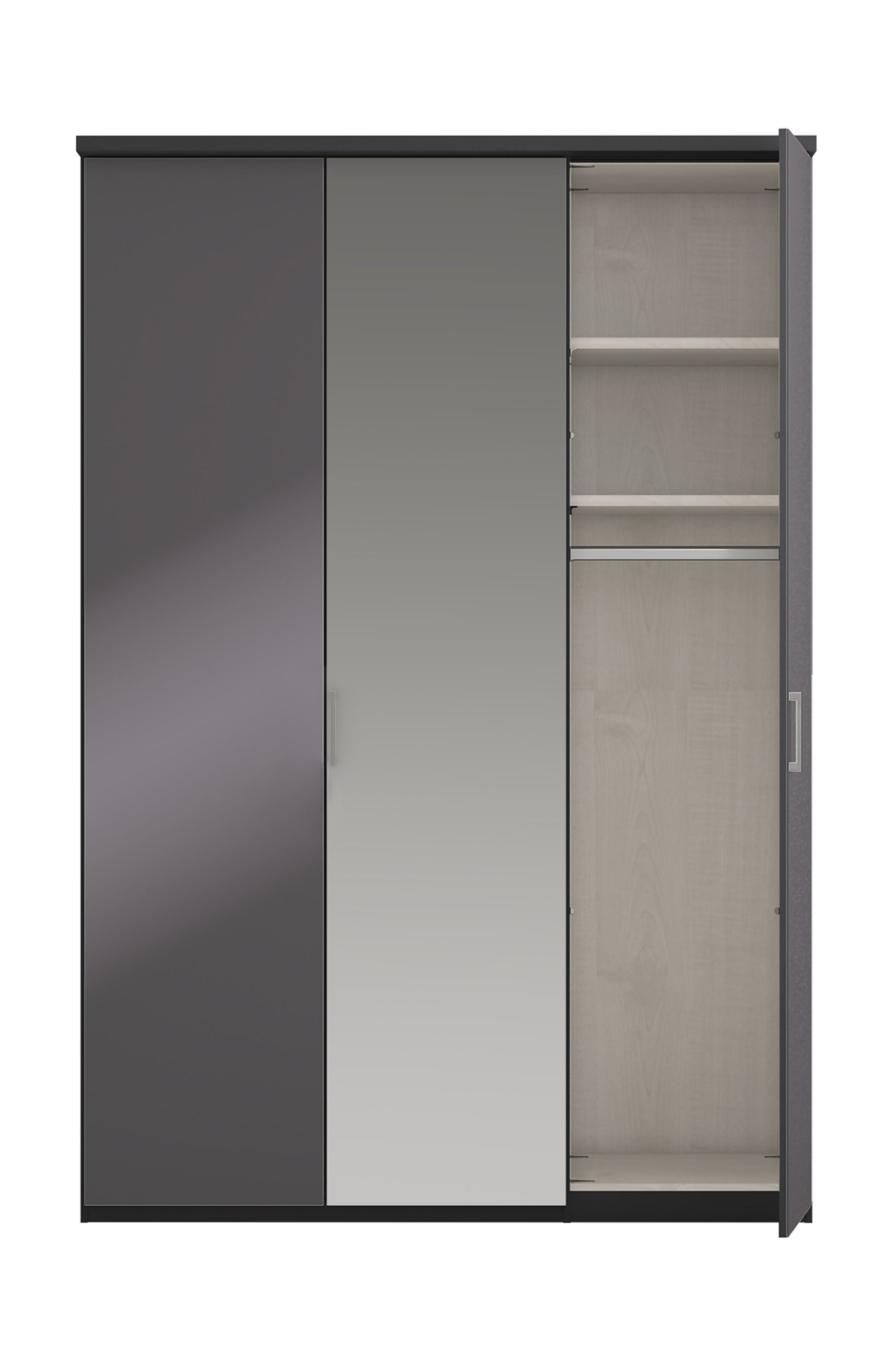 Wiemann Cairns Graphite and Mirror 3 Door Hinged Wardrobe | Beds Direct UK