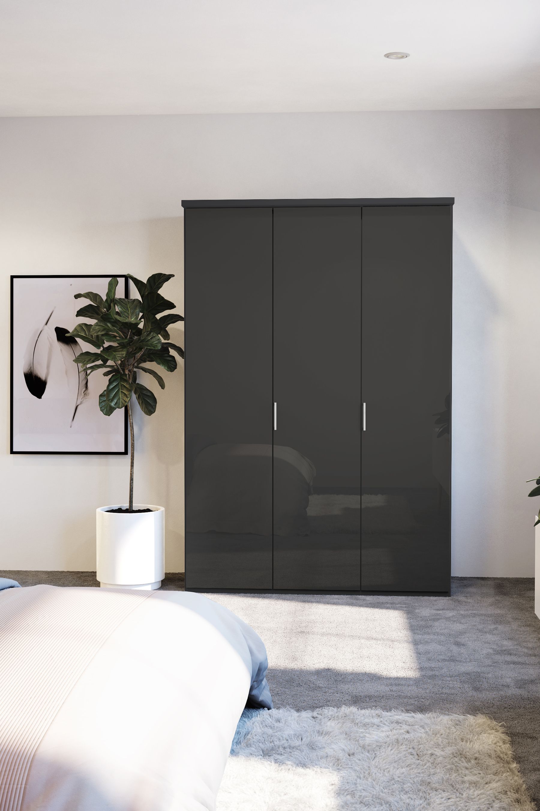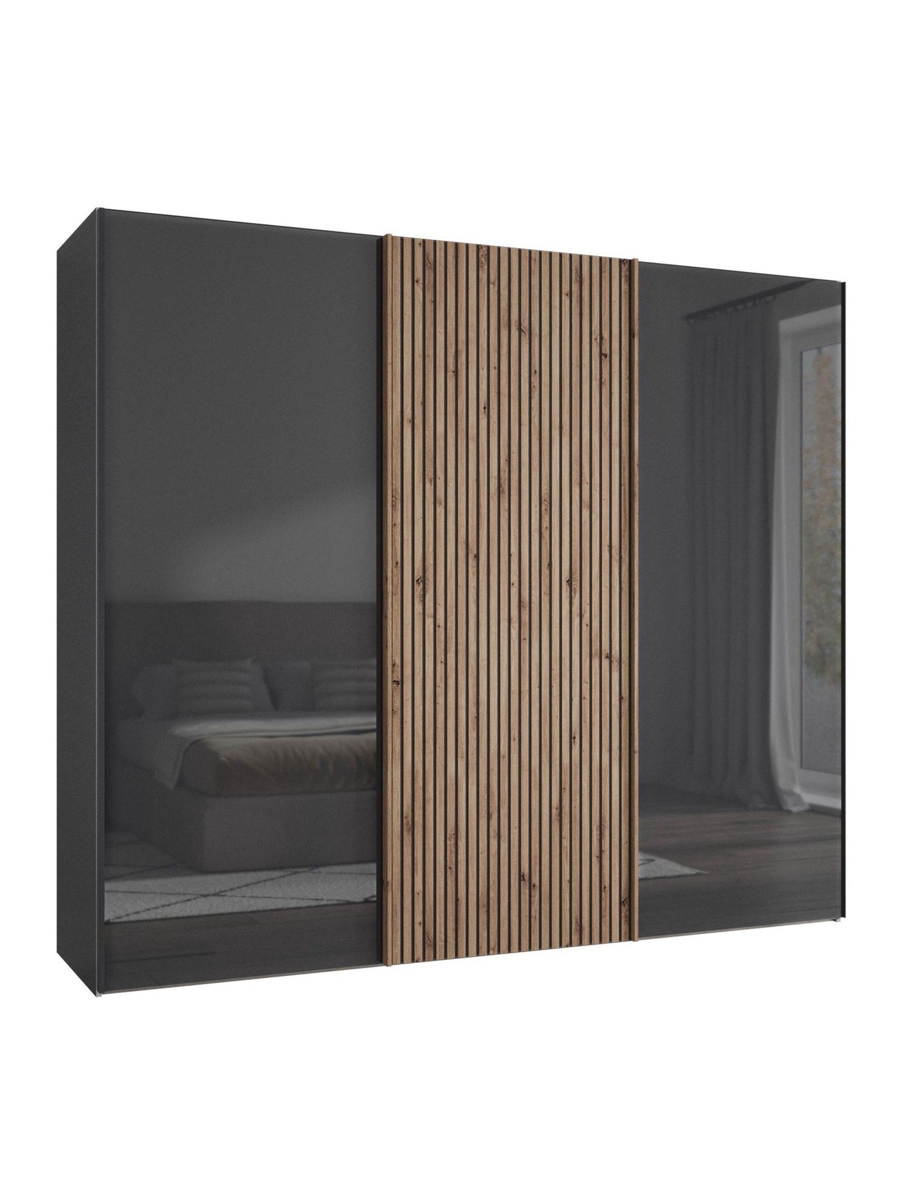 Buy Wiemann Peyton Graphite Glass Semi Fitted Triple Wardrobe from the ...