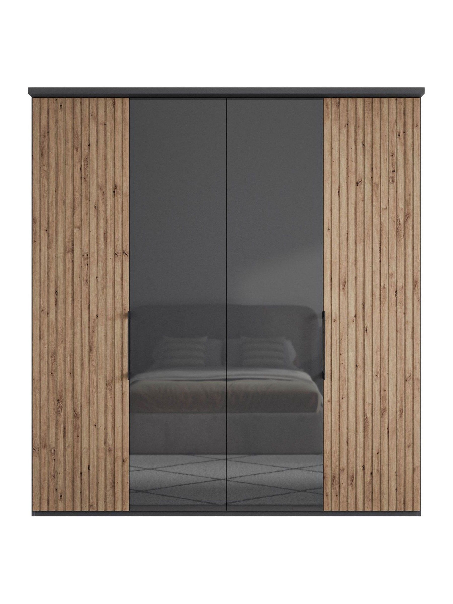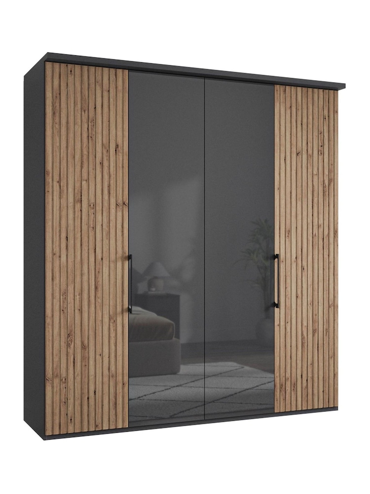 Wiemann Bristol Graphite and Mirror Front 4 Door Wardrobe - Pendle ...