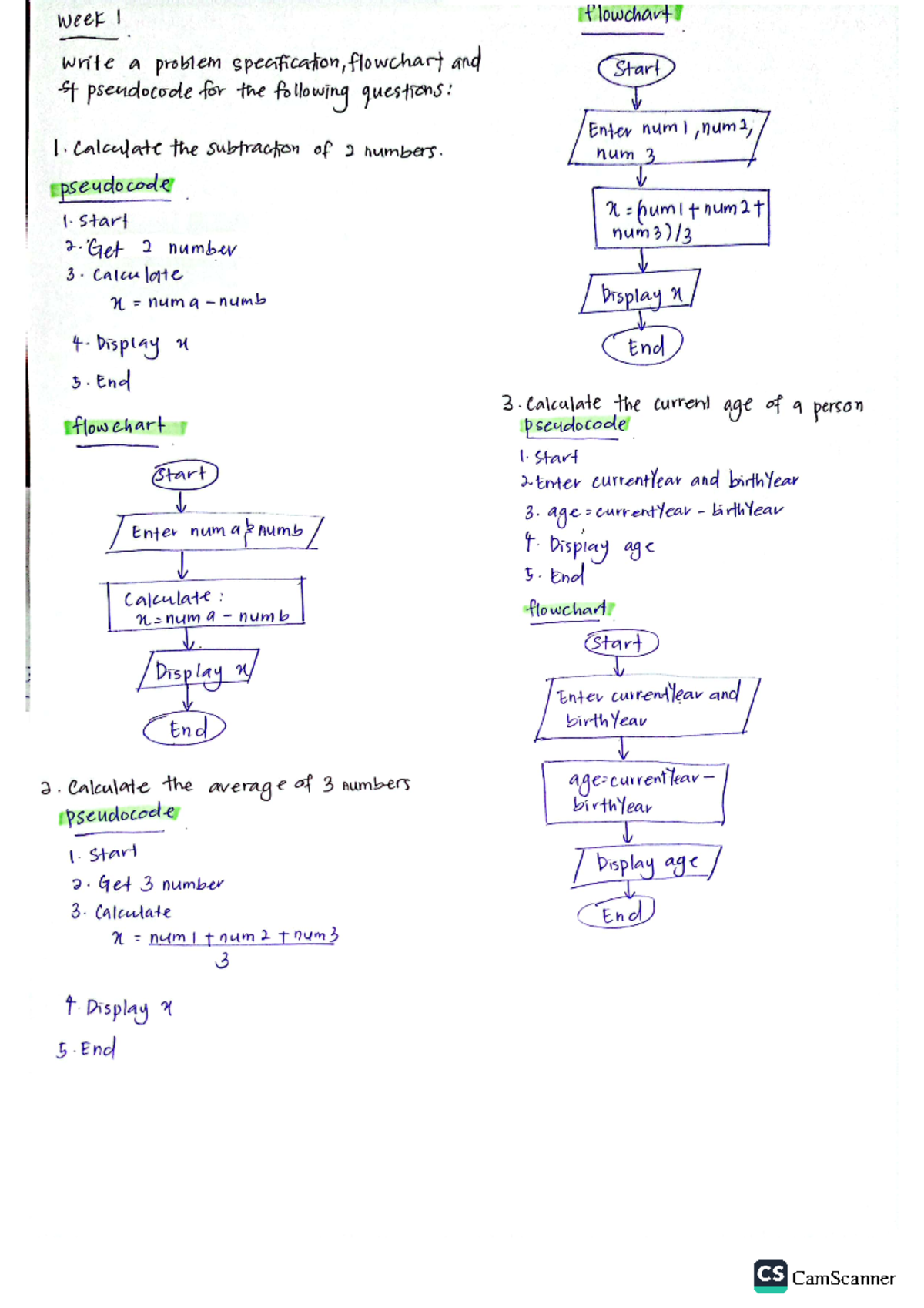 CS101 Week 1 Exercise: Flowcharts and Pseudocode Practices - Studocu