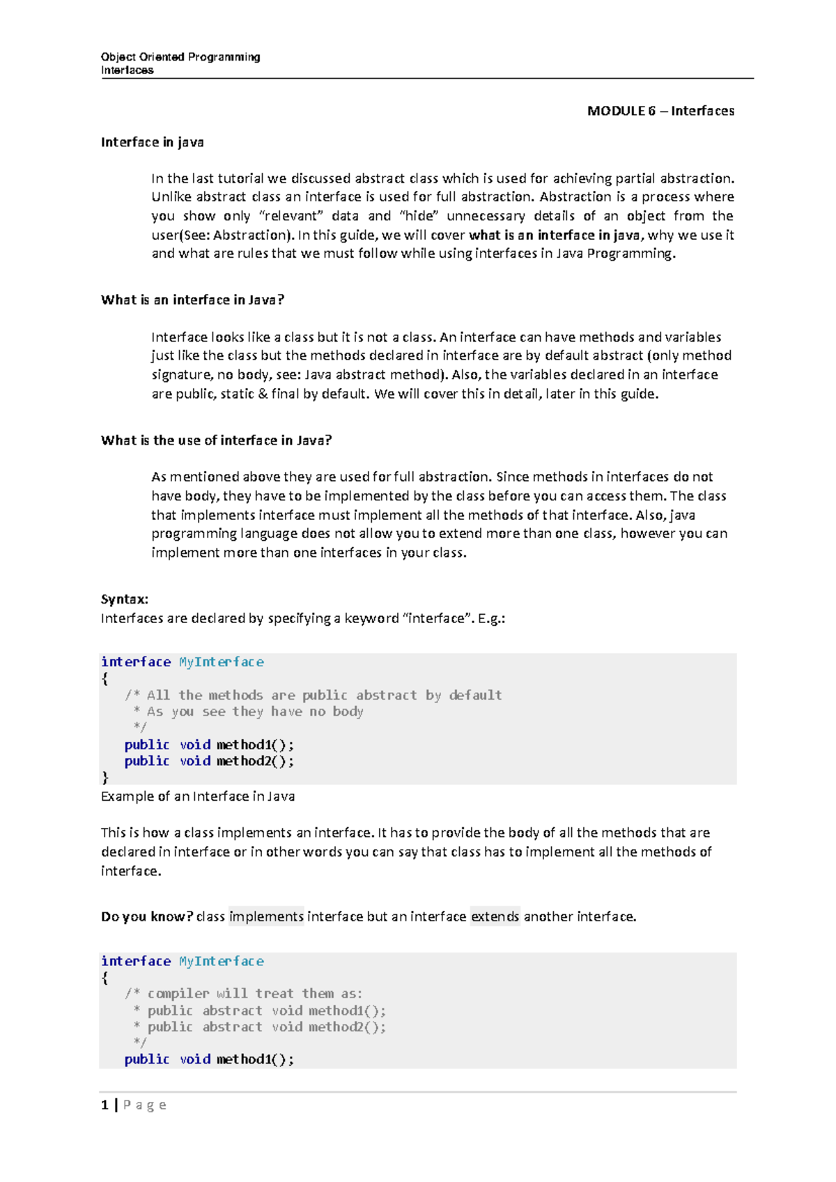 Module 6 - Interfaces in Java Programming - amacc - Studocu