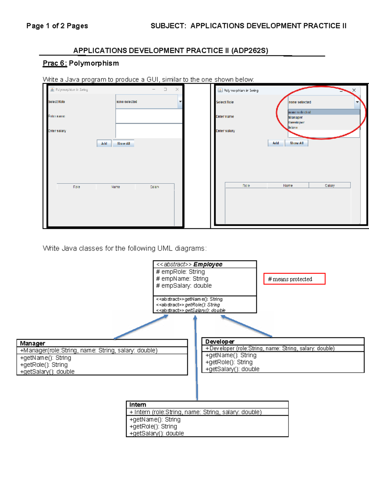 ADP262S Prac 6: Java GUI & Polymorphism Implementation - Studocu