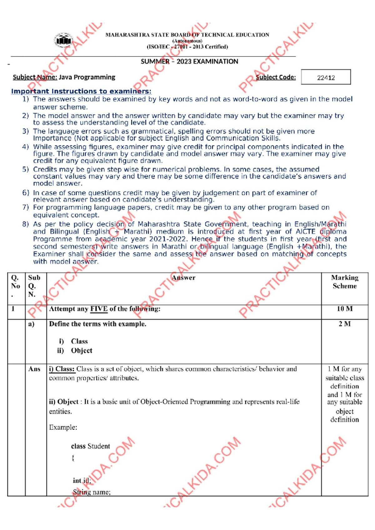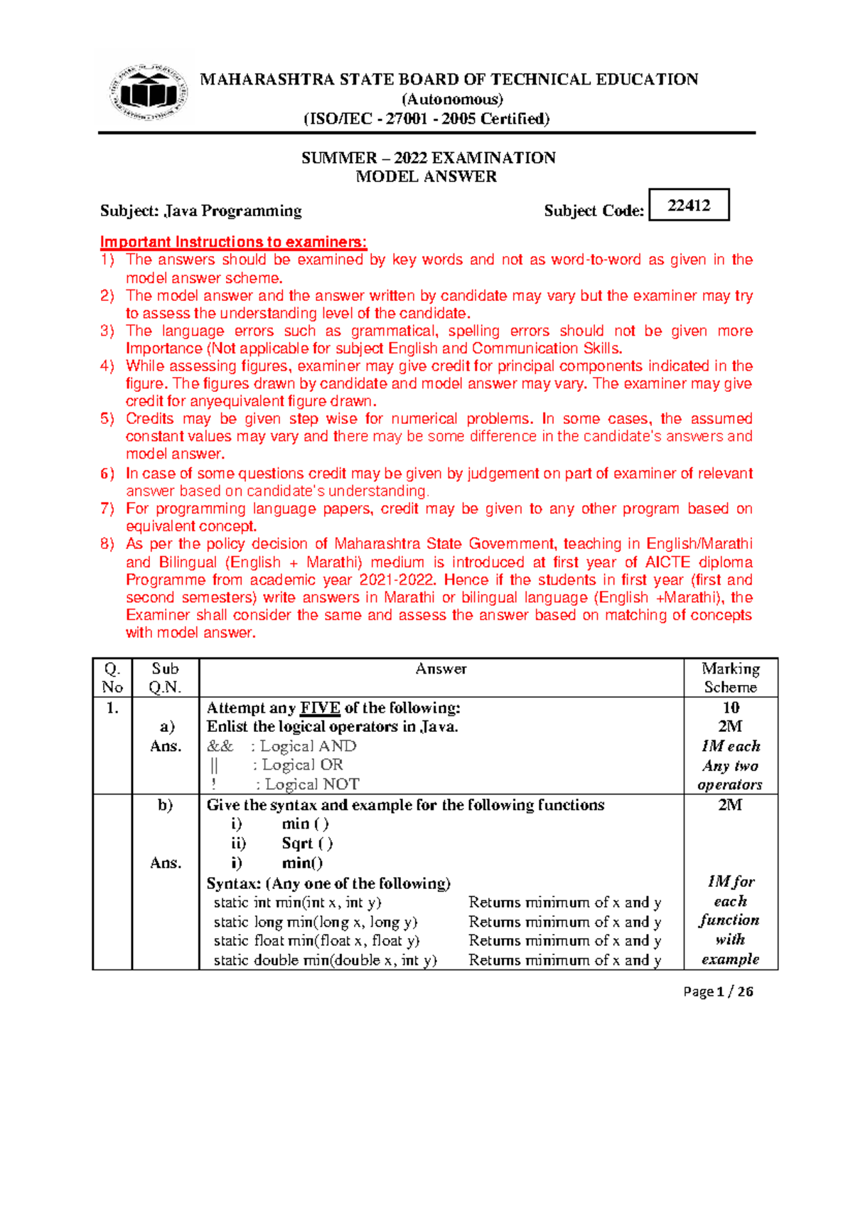 Java Programming Summer 2022 Model Answer Paper (Subject Code: 22412 ...