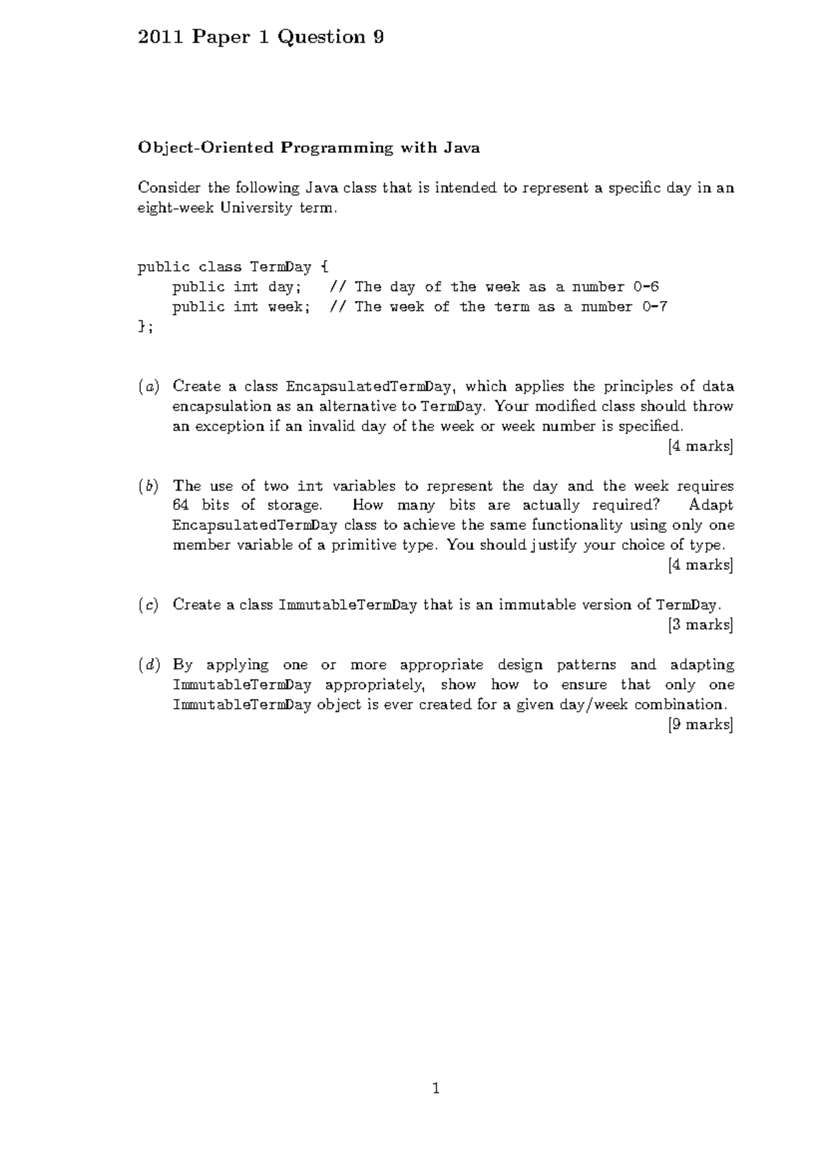 2011 CS101 Final Exam: Java TermDay Class Modifications - Studocu