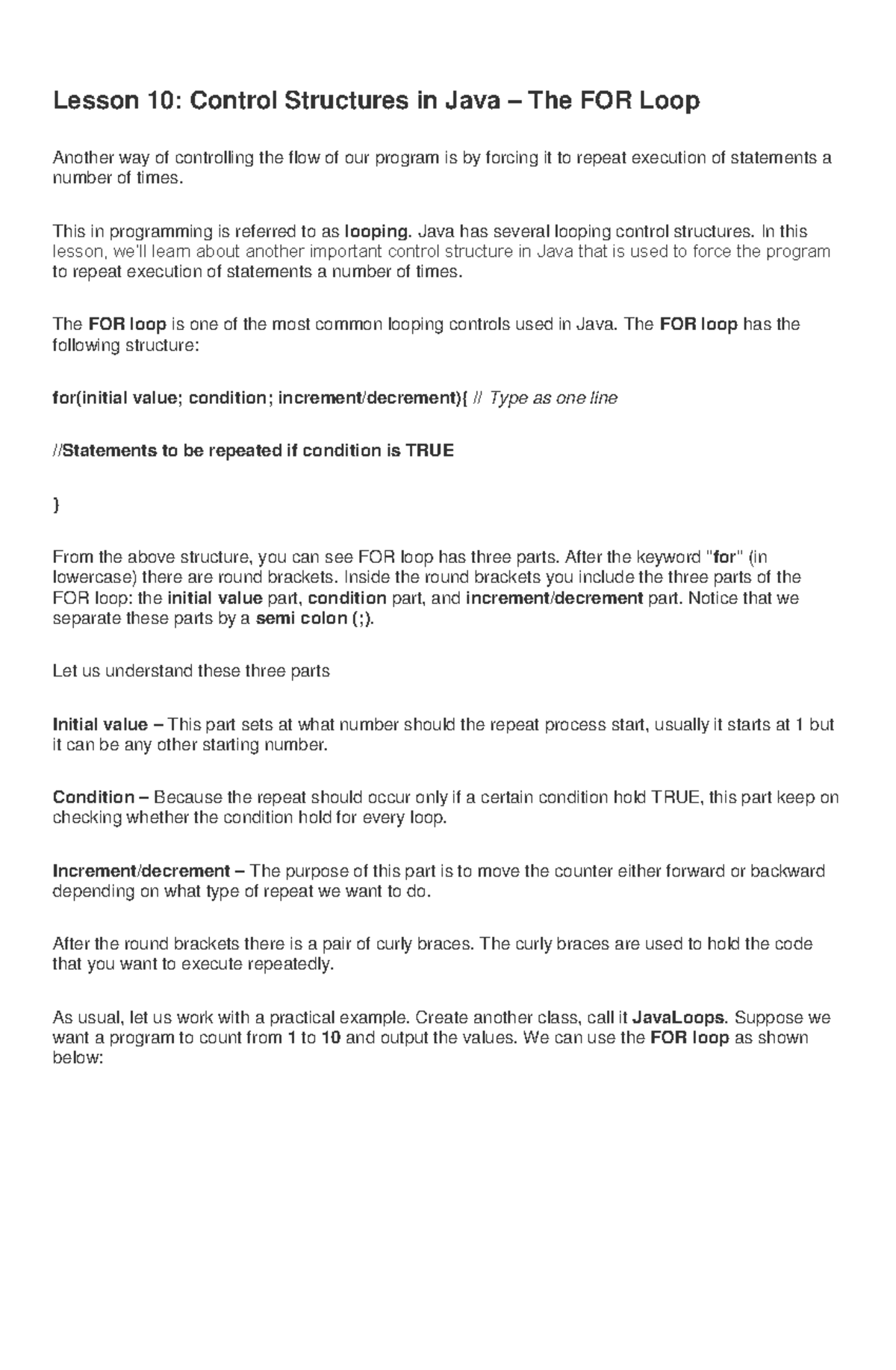 Lesson 10: Control Structures in Java - Understanding the FOR Loop ...
