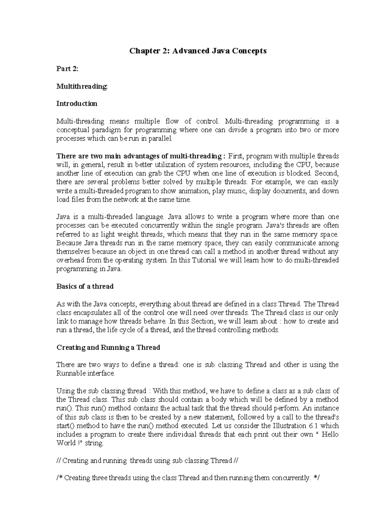 Chapter 2: Advanced Java Concepts - Multithreading Overview - Studocu