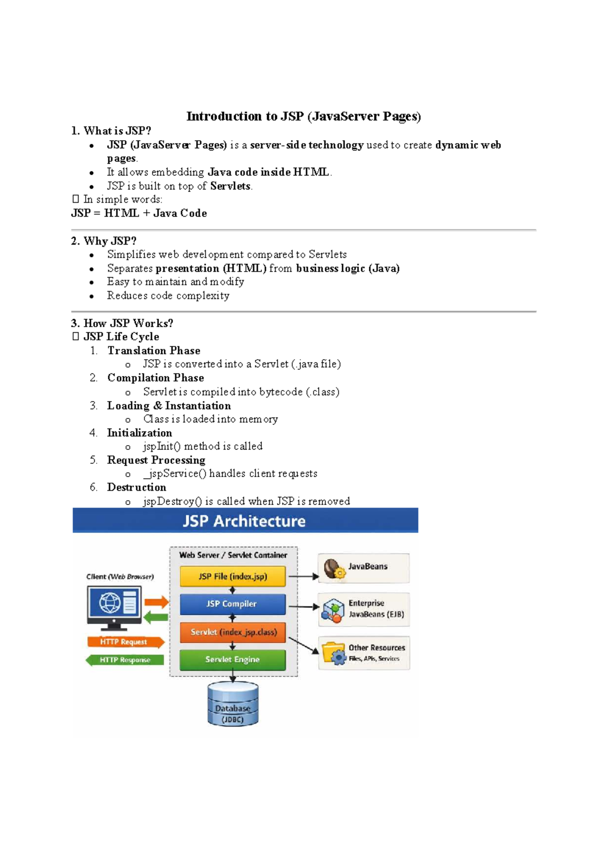 JSP 101: Comprehensive Notes on JavaServer Pages (JSP) - Studocu