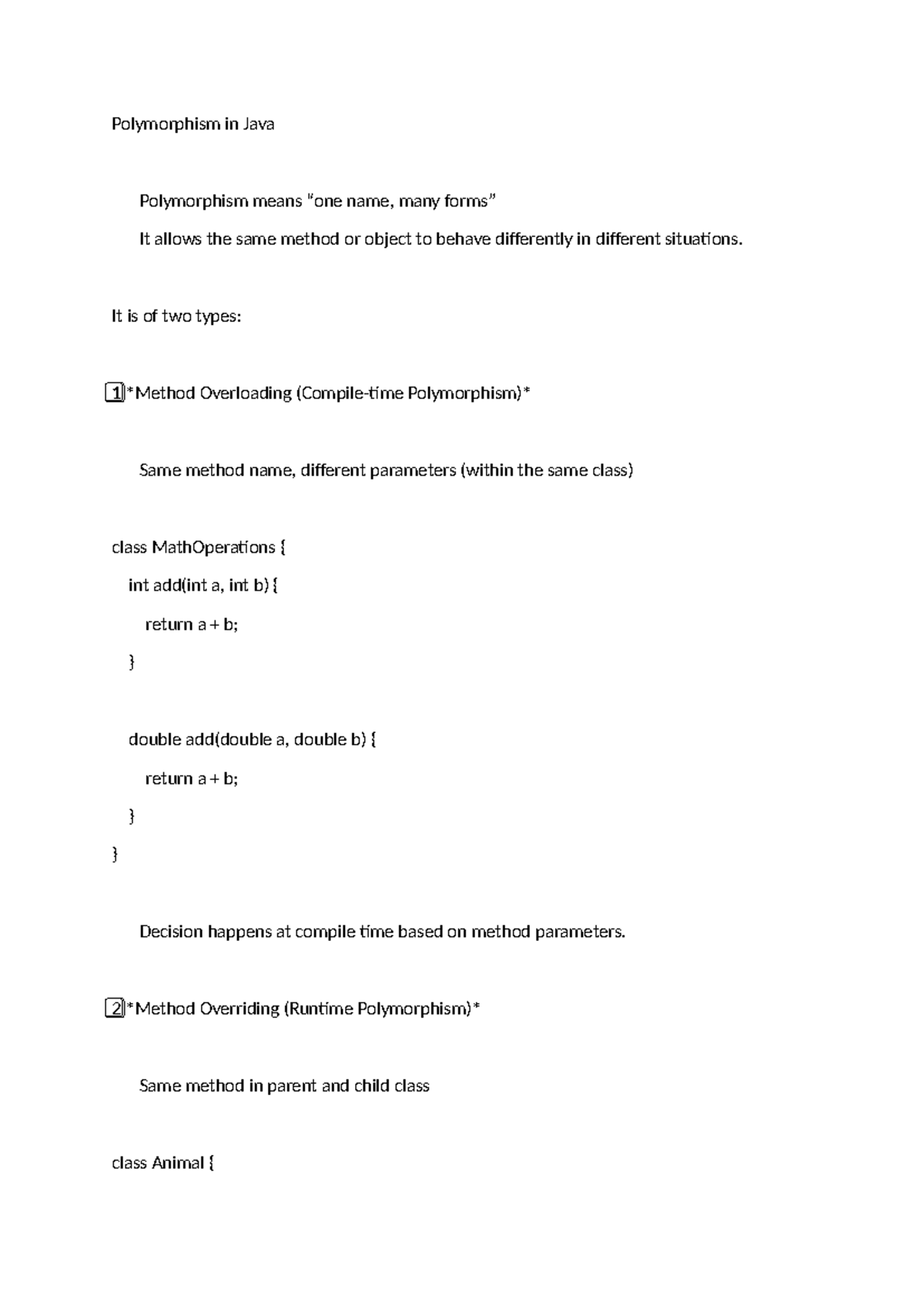 Java Programming: Understanding Polymorphism Concepts - Studocu
