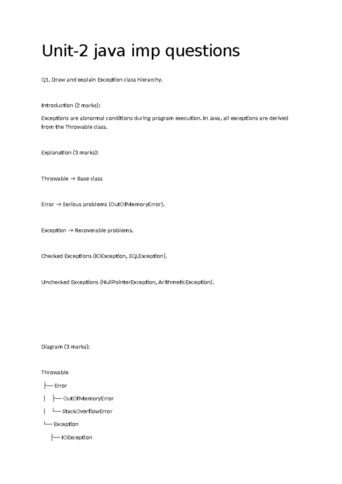 Java Exception Handling & Multithreading Concepts - Q&A Guide - Studocu