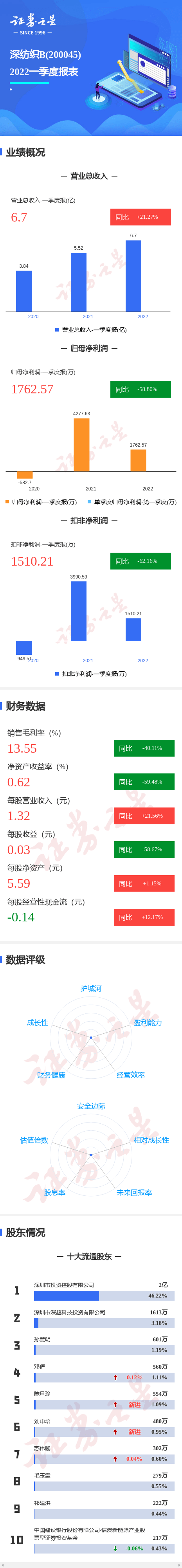图解深纺织B一季报:第一季度单季净利润同比减58.80%_数据_持股_股东