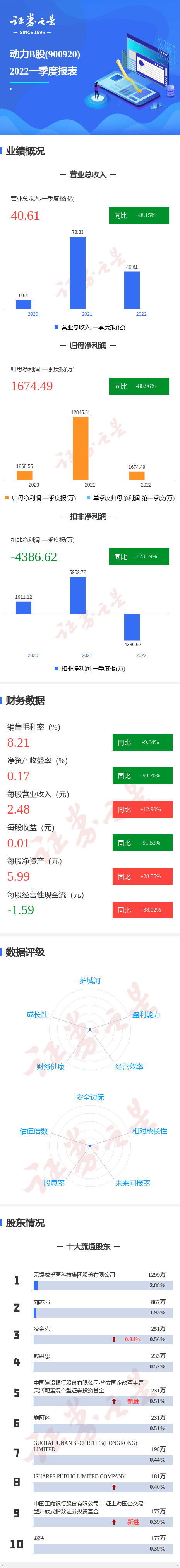 图解动力B股一季报:第一季度单季净利润同比减86.96%_数据_持股_比例