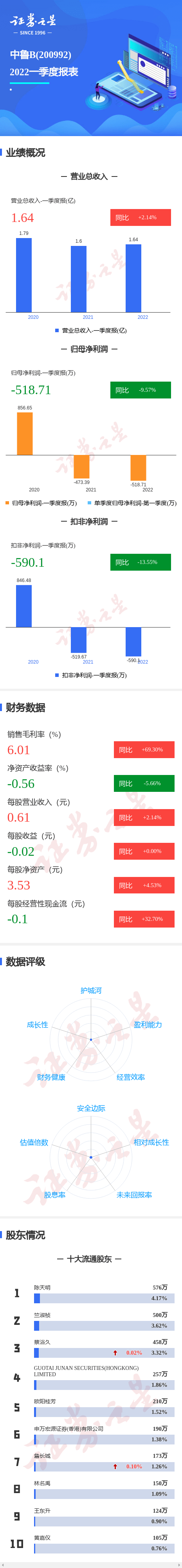 图解中鲁B一季报:第一季度单季净利润同比减9.57%_股东_数据_持股数