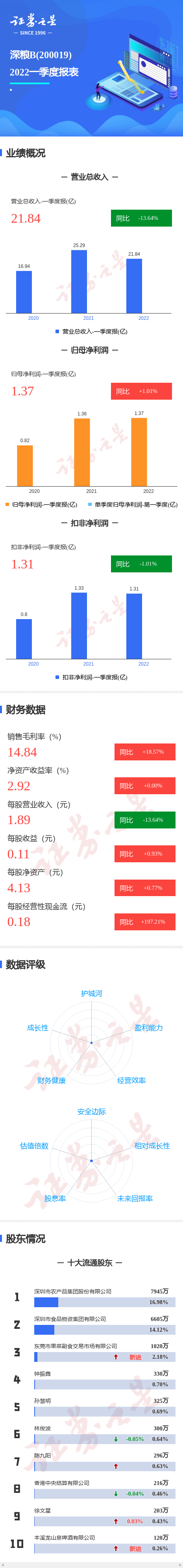图解深粮B一季报:第一季度单季净利润同比增1.01%_持股_数据_比例