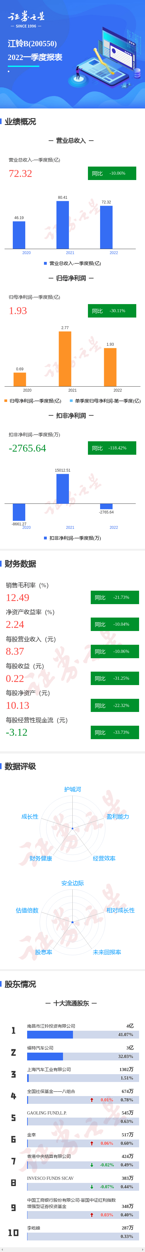图解江铃B一季报:第一季度单季净利润同比减30.11%_股东_数据_比例