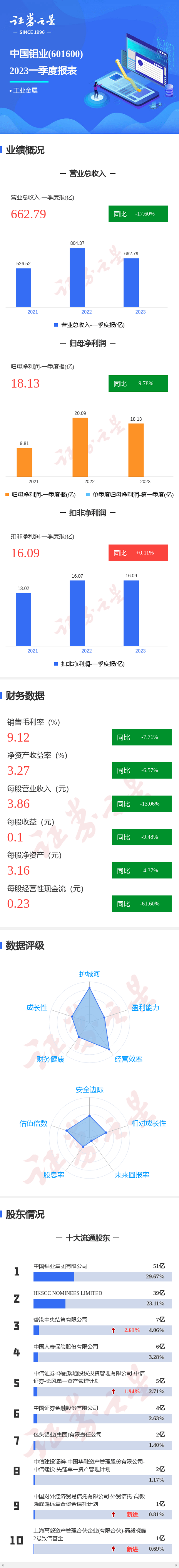 图解中国铝业一季报:第一季度单季净利润同比减9.78%_数据_管理_比例