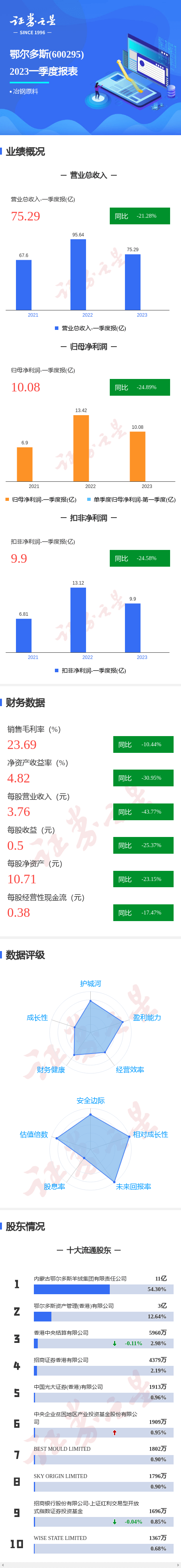 图解鄂尔多斯一季报:第一季度单季净利润同比减24.89%_股东_数据_持股数