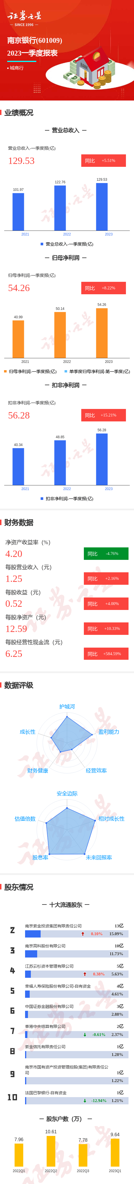 图解南京银行一季报:第一季度单季净利润同比增8.22%_股东_数据_持股数